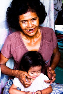 Kim is originally from Takeo Province but has lived in Siem Reap for most of her adult life. Since her husband left her a year ago she has been living with her daughter’s family. The picture above shows her with one of her granddaughters.