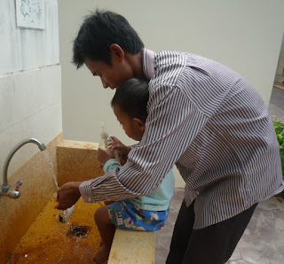 Peng can be seen washing Suphet’s hands and feet. Suphet is already learning good hygiene practices at a young age, something which JWOC advocates and that is vital here in Cambodia.