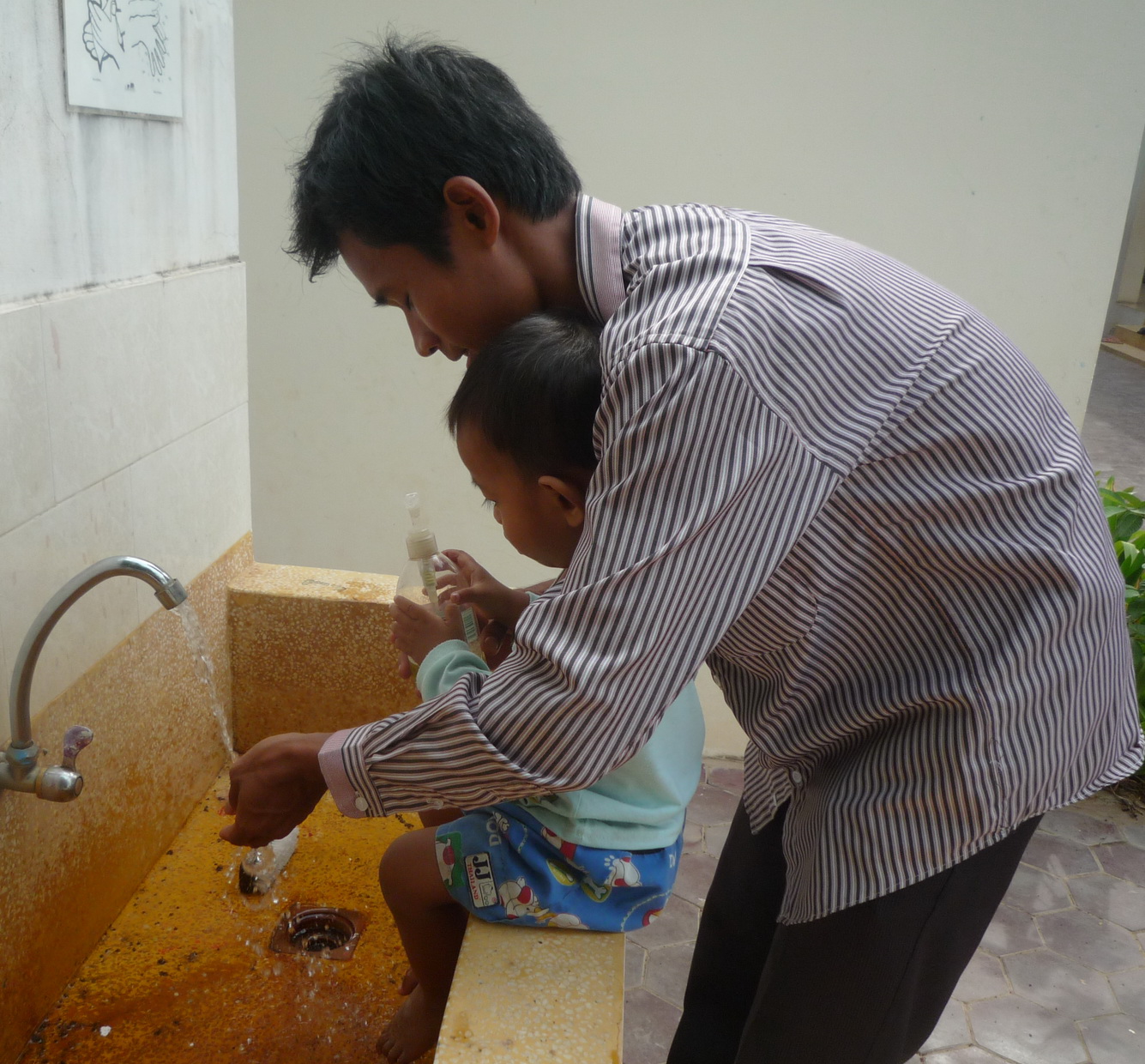 Peng can be seen washing Suphet’s hands and feet. Suphet is already learning good hygiene practices at a young age, something which JWOC advocates and that is vital here in Cambodia.