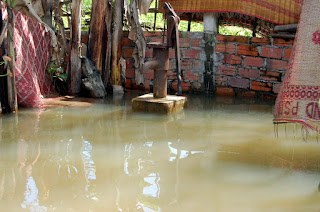 Today the weather is dry and sunny; standing in JWOC it’s difficult to imagine we are in an flooding situation. However just a few hundred meters away paths and wells are underwater.