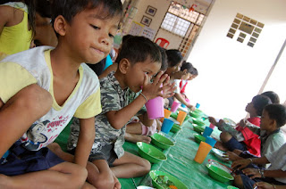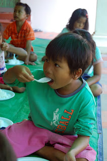The lunches have the double benefit of keeping children out the water and also making sure they are getting at least one good meal a day. The children need no persuading in eating up their food, every last bit is consumed.