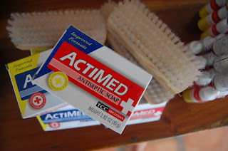 Every child is checked and a liquid antiseptic is applied to any cuts, sores or other wounds. With the bacteria count in the flood water so high keeping wounds as clean as possible is very important.