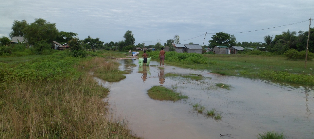 The photo of the road to scholarship student’s house took while home visit process. It is so difficult to get to the house because some part of the road cannot drive motorbike in; we have to walk through the flooded area.